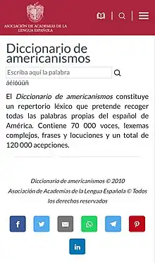 El Diccionario de americanismos (DA) es uno de los diccionarios elaborados por Asociación de Academias de la Lengua Española (ASALE), la cual está formada por las veintitrés academias asociadas. Su primera edición salió al mercado en el 2010, coincidiendo con los bicentenarios de independencia de algunas naciones hispanoamericanas.[1]