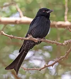 El drongo de espalda brillante (Dicrurus divaricatus) es una especie de ave paseriforme de la familia Dicruridae propia del Sahel y el Cuerno de África.[1]