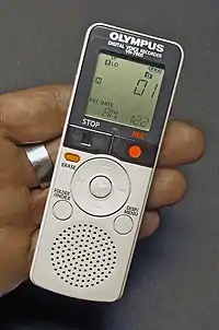Un dictáfono es un dispositivo de grabación de sonido usado comúnmente para grabar un discurso que más tarde debe reproducirse o mecanografiarse.