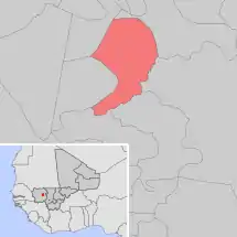 Se encuentra ubicada al oeste del país y al sureste de la región de Kayes, cerca de la frontera con República de Guinea y la región de Kulikoró.