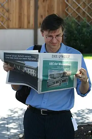 Die Welt (El Mundo) es un diario alemán publicado por Axel Springer. Fue fundado en Hamburgo en 1946 por las fuerzas de ocupación británicas y su ideología política es conservadora.