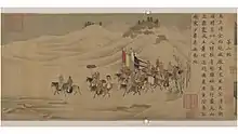 ![]() Salida de Cai Wenji de China. Pergamino, cortesía de la fototeca del Metropolitan Museum of Art, Nueva York.[1] | ||