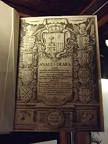 - — (1697). Anales de Aragon desde el año M.D. XXV. del nacimiento de nvestro Redemptor hasta el de M.D. XL. An̄adēse primero algunas noticias muy importantes desde el an̄o M.D. XVI. hasta el de M.D. XXV. Zaragoza: Herederos de D. Dormer. OCLC 977274410.