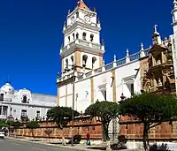 - El cuadro de gran formato pintado por el pintor potosino Melchor Pérez de Holguín titulado Entrada del Virrey Arzobispo Morcillo en Potosí; y,