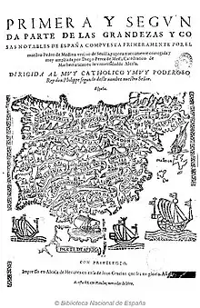 - Primera y Segunda parte de las grandezas y cosas notables de España. Compuesta primeramente por el Maestro Pedro de Medina vezino de Sevilla y agora nuevamente corregida y muy ampliada por Diego Pérez de Mesa, catedrático de Matemáticas de la Universidad de Alcalá, Alcalá de Henares, 1595. disponible en Google books