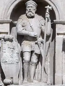 ![]() Estatua de Diego Rodríguez en el arco de Santa María de Burgos | ||