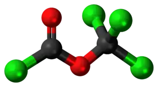 El difosgeno es un compuesto químico de fórmula ClCO2CCl3. Este líquido incoloro es un importante reactivo en la síntesis de los compuestos orgánicos. El difosgeno está relacionado con el fosgeno, pero es más fácil de manipular gracias a su forma líquida habitual, mientras que el segundo se presenta en condiciones ambientales en forma de gas.