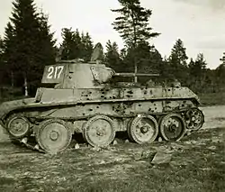 Un tanque soviético T-26 durante los combates en la Línea Mannerheim
