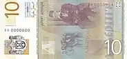 | Billetes | 10, 20, 50, 100, 200, 500, 1.000, 2000, 5.000 RSD | |