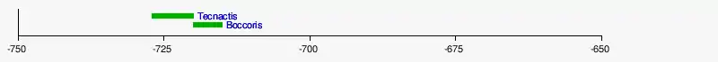 | Tecnactis | Shepsesra | Tafnajt | 727 - 720 a. C. | |