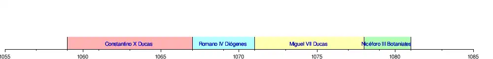 | Nicéforo III Botaniates (r. 1078-1081) | María de Alania | Miguel VII Parapinaces (r. 1071-1078) | Andrónico Ducas | Constancio Ducas | Andrónico Ducas | María de Bulgaria | Isaac I Comneno (r. 1057-1059) | Juan Comneno | Ana Dalaseno | ||||||||||||||||||||||||||||||||||||||||||||||||||||||||||||||||||||||