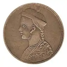 Durante la segunda parte del siglo XIX y el primer tercio del XX, circularon en el Tíbet numerosas monedas de plata extranjeras. La mayoría de ellos se negociaron al peso, como dólares de plata mexicanos e hispanoamericanos, rublos rusos y marcos alemanes. La excepción fueron las rupias indias británicas, en particular las que tenían el retrato de la reina Victoria, que circularon ampliamente en el Tíbet y se prefirieron principalmente a las monedas tibetanas. Estas rupias eran de buena plata y tenían un valor fijo, cambiándose por tres tangkas hasta alrededor de 1920[16] y en los últimos años del XX aumentaron considerablemente de valor. Las autoridades chinas vieron la popularidad de las rupias indias entre los comerciantes tibetanos con recelo y en 1902 empezaron a acuñar sus propias rupias, que eran copias cercanas de las rupias indias de Victoria, reemplazando el retrato de la reina por el de un chino mandarín, o, como la mayoría de los numismáticos creen, del emperador Guangxu de China. Las rupias chinas se acuñaron en Chengdu y, a partir de la década de 1930, también en Kangding, la antigua ciudad fronteriza sino-tibetana en el oeste de Sichuan. Las primeras emisiones eran de buena plata y podían tener cierta popularidad entre los tibetanos, pero las emisiones posteriores, en particular las acuñadas en Kangding, tenían una cantidad considerable de aleación y, por lo tanto, no fueron aceptadas por muchos comerciantes. En el primer período de acuñación también se acuñaron en Chengdu un pequeño número de medias y cuartos de rupias. Dado que a menudo terminaban como botones o como piezas de joyería de plata, su producción se interrumpió pronto y, cuando se necesitaba un pequeño cambio, las rupias enteras se cortaban por la mitad o se cortaban en cuartos con la ayuda de una espada y un martillo.[17] La cifra total de acuñación de las medias rupias fue de 130.000 y la del cuarto de rupias 120.000. Se estima que entre 1902 y 1942 se acuñaron entre 25.500.000 y 27.500.000 rupias de Sichuan.[18]