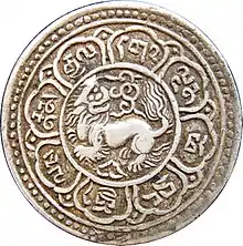 Para superar la escasez de monedas en el Tíbet en aquella época, el gobierno tibetano empezó a acuñar sus propias monedas, siguiendo el modelo de los prototipos nepaleses. Esto ocurrió en 1763-64 y otra vez en 1785 sin interferencia alguna del gobierno chino.[8][9][10][12]
