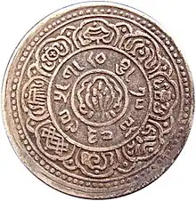 La primera moneda que se utilizó ampliamente en el sur del Tíbet era monedas de plata, las cuales eran suministradas por los Reinos nepaleses de Malla y los primeros reyes del subsiguientes de la dinastía Shah desde alrededor de 1640 hasta 1791.[7]