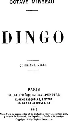 Dingo es una novela del escritor francés Octave Mirbeau, publicada en mayo de 1913. Como Mirbeau estaba enfermo e incapaz de acabar su obra, su joven amigo Léon Werth escribió los últimos capítulos. Todavía Dingo no ha sido traducido en castellano.