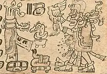 - Dios M. Como deidad comerciante, el dios L tiene un paralelo con otro dios comerciante del Posclásico, el dios pintado de negro M (Códice de Madrid).