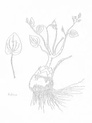 Se encuentra sobre sustrato calizo. Posee numerosas raicillas que le permiten el anclaje a roquedos de alta pendiente, su hábitat más común. En la base del tallo forma una especie de tubérculo llamado ñame, en cuya superficie pueden observarse las muescas de la inflorescencia anual que produce: contándolas, pueden datarse individuos de tres siglos de edad. Cada año echa hojas y tallos tiernos; tales hojas son acorazonadas, verde mate, con una nerviación muy característica. El fruto es erecto, con tres altas y un estilo persistente.