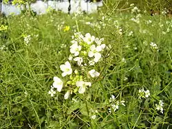 Es una planta herbácea con hojas irregulares y flores blancas de 4 pétalos con disposición en cruz, 6 estambres en 2 niveles. Presenta cáliz y estambres en la misma flor, también hay sépalos. Florece a finales de invierno y principios de primavera. Las semillas se encuentran en vainas dehiscentes con disposición en doble fila, raíz típica, alrededor de un eje central. Es considerada habitualmente como una mala hierba.