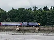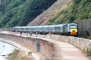 El Ferrocarril del Sur de Devon se construyó según los diseños de Isambard Kingdom Brunel, y desde Exeter discurre por una ruta que sigue el río Exe hasta Dawlish Warren, desde donde pasa por debajo de los acantilados marinos hasta Teignmouth y luego sigue el curso del río Teign hasta Newton Abbot. El recorrido bordea aguas sometidas al efecto de las mareas durante unas 13 millas (20,9 km), 4 millas (6,4 km) de las cuales son de mar abierto.