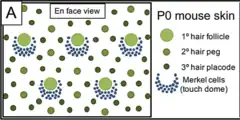 Los domos táctiles (TD) emergen como parches de células de Merkel con queratinocitos agrupados, en la etapa embrionaria 16.5 (E16.5) del ratón.[4]
