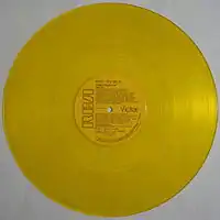 ![]() Un disco de vinilo de color amarillo y semi transparente |