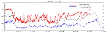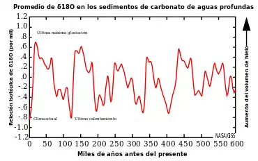 Los datos climáticos del pasado —especialmente los que se refieren a la temperatura— pueden deducirse fácilmente a partir de la evidencia sedimentaria, aunque sin la precisión de los actuales instrumentos de medición que se usan para las temperaturas actuales. Tal vez el indicador más útil sobre el clima del pasado es el fraccionamiento de los isótopos de oxígeno, denotado como δ18O. Ese fraccionamiento está condicionado principalmente por la cantidad de agua encerrada en el hielo y la temperatura absoluta del planeta y ha permitido construir una escala de tiempo de las etapas isotópicas marinas.