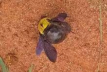 Las hormigas de fuego importadas han diezmado las abejas que anidan en el suelo en amplias zonas del sur de los Estados Unidos.[20]