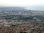 - El tráfico y el tiempo de los viajes. Otros estudios argumentan que las intensidades de tráfico tienden a ser menos, las velocidades de circulación más rápidas, y como resultado, una menor contaminación ambiental. (Véase el informe The Demographia). Kansas City en Misuri es a menudo citado como el ejemplo ideal de ciudad con baja densidad de población, con la congestión por debajo de la media y los precios de los inmuebles por debajo de la media de las ciudades del medio oeste. La realización de estudios midiendo el tiempo que toma conmutar en las principales áreas metropolitanas de los Estados Unidos ha demostrado una disminución de los tiempos de viaje en el período 1969 a 1995 a pesar de que el tamaño geográfico de las ciudades aumentó.[18] Los datos más recientes sugieren que esta tendencia se ha invertido, un estudio del año 2000 de la oficina censal de EE. UU. muestran los tiempos de viaje han aumentado con respecto a todos los períodos anteriores.[19]