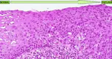 - Universidad de Utah, Escuela de Medicina. Imagen de una displasia de cuello uterino; Displasia cervical escamosa de mayor magnificación Descripción en inglés. Último acceso 5 de marzo de 2008.