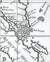 Para 1844 la preferencia había sido expresada para la Isla Romania Outer Island, o Peak Rock.[64] En algún momento de noviembre de 1844, el Gobernador de los Asentamientos estrechos, William John Butterworth, escribió al Sultán y el Temenggung de Johor con respecto al tema. Sus cartas no se han encontrado, sin embargo traducciones inglesas de las respuestas con fecha de 25 de noviembre de 1844, existen.[64] El sultán dijo: