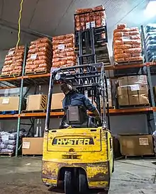 La distribución moderna de alimentos en los Estados Unidos es el resultado del crecimiento continuo desde la década de 1960. Una red de infraestructura, almacenes, fábricas y minoristas comerciales comprende la mayor parte de la distribución de alimentos. Se estima que los alimentos pueden viajar cerca de 1500 millas entre productores y consumidores. Si bien muchos productos, específicamente carne y granos, se distribuyen de diferentes maneras, existen tendencias comunes en la distribución de la mayoría de los alimentos modernos. Un aumento en el uso de la tecnología para la agricultura ha transformado la pequeña granja local de la década de 1940 en grandes instalaciones de producción.[8][9] Varias agencias federales, como el Departamento de Agricultura de EE. UU. y la Administración de Alimentos y Medicamentos, administran y mantienen la productividad del sistema de distribución de alimentos de EE. UU.[8]