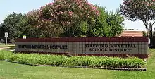 Letrero del Complejo Municipal de Stafford, que tiene las escuelas municipales