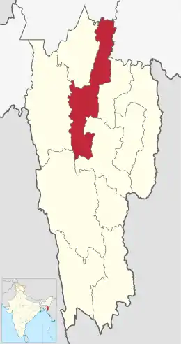 ![]() Ubicación del distrito de Aizawl en Mizoram. | ||