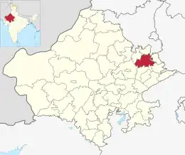 ![]() Ubicación del distrito de Alwar en Rajastán. | ||