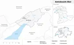 El distrito de Biel-Bienne es el único distrito oficialmente bilingüe del cantón de Berna. Limita al oeste y al norte con el distrito de Courtelary, al este con Büren, al este y sur con Nidau, y al suroeste con La Neuveville.