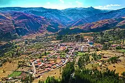 ![]() Vistá aérea de Chinchaypujio, la capital distrital.