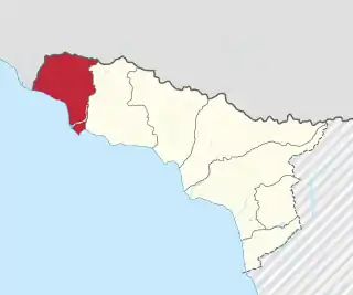 Hay numerosos pueblos, principalmente los más rurales y cercanos a la frontera con Rusia, en los que la población es mayoritariamente armenia, como Jashupse (98,2%), Mikelripshi (94,5%), Mejadiri (90,6%), Baghnari (88,9%), Jeivani (79%), Jolodnaya Rechka (71,6%), Leselidze (63,4%), Koljida (59,6%), Gantiadi (55,9%), o Alajadzi (45,5%).