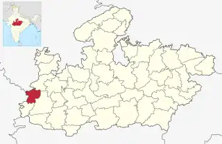 ![]() Ubicación del distrito de Jhabua en Madhya Pradesh. | ||