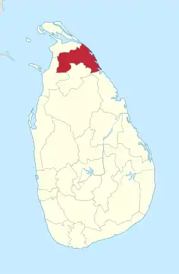 ![]() Ubicación del distrito de Mullaitivu en Sri Lanka. | ||