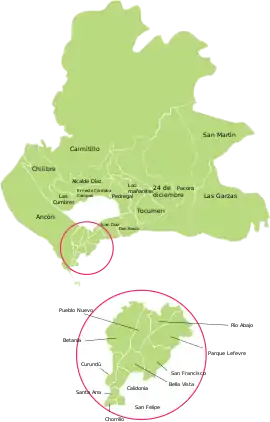 Desde el 1 de junio de 2017, el distrito de Panamá está conformado por 26 corregimientos:[3]