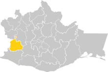 ![]() Ubicación del distrito de Putla en el estado de Oaxaca. | ||
