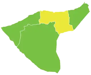 ![]() Gobernación de Hasaka con el Distrito de Qamishli en amarillo. | ||