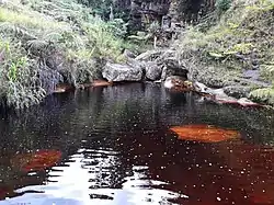 ![]() Aguas rojizas de la quebrada de Altamiza de origen natural por su contenido de hierro y pigmentos vegetales.
