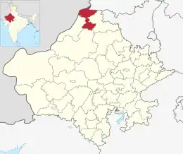 ![]() Ubicación del distrito de Sri Ganganagar en Rajastán. | ||