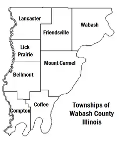 El condado de Wabash es uno de los 17 condados de Illinois que usa oficialmente el término precinct en lugar de township para designar a sus subdivisiones. No obstante, con frecuencia son llamadas civil townships.