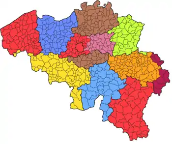 - "Arrondissements of Belgium". Statoids.