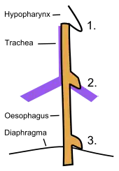 - Los divertículos epifrénicos se deben a una disfunción del esfínter esofágico inferior, como en la acalasia.[8]