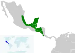 Es bastante común en el sur y sureste de México, principalmente en la vertiente del Golfo. Su distribución se ha extendido rápidamente desde la mitad del siglo XX. Llegó a El Salvador en la década de 1950, al este de Guatemala en la década de 1960; se hizo común en Costa Rica desde la década de 1990 y se espera que pronto colonice Panamá. Su expansión parece estar favorecida por la deforestación.