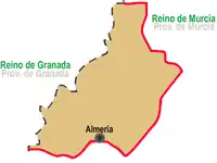 La Provincia de Almería se formó uniendo poblaciones del Reino de Granada que no fueron incluidas en la provincia de Granada ni la de Málaga ni la de Cádiz.[2]