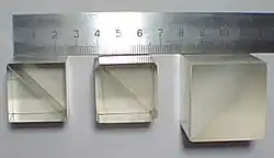 En su forma más común, un cubo, está compuesto por dos prismas de vidrio triangulares que están pegados por la base usando bálsamo de Canadá. El grosor de la capa de resina es ajustado para que —a una cierta longitud de onda— la mitad de la luz incidente en una "puerta" (es decir, una cara del cubo) sea reflejada y la otra mitad sea transmitida. Los beam splitter polarizadores, tales como el prisma de Wollaston, usan materiales birrefringentes, dividiendo la luz en rayos de diferente polarización.